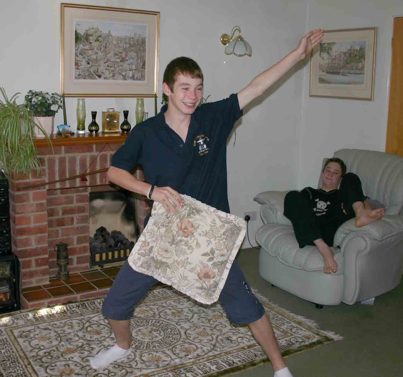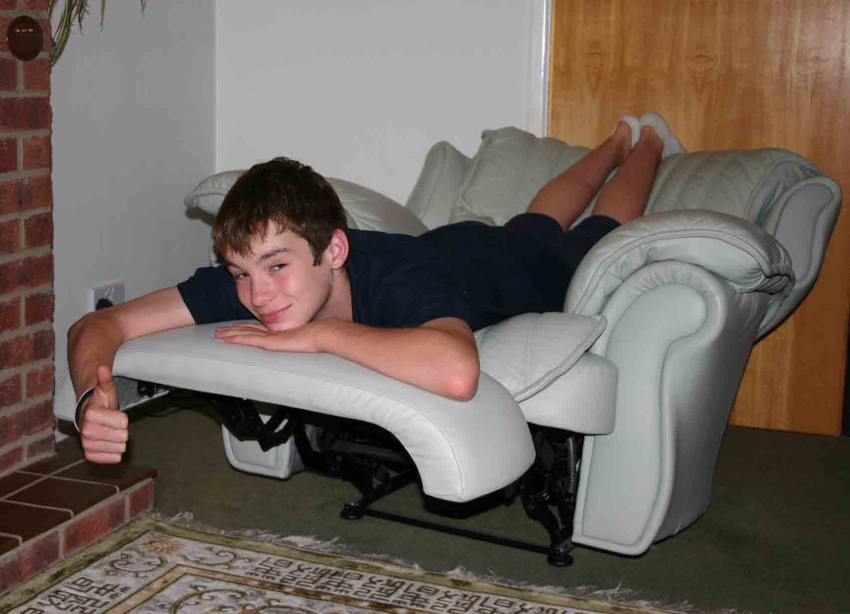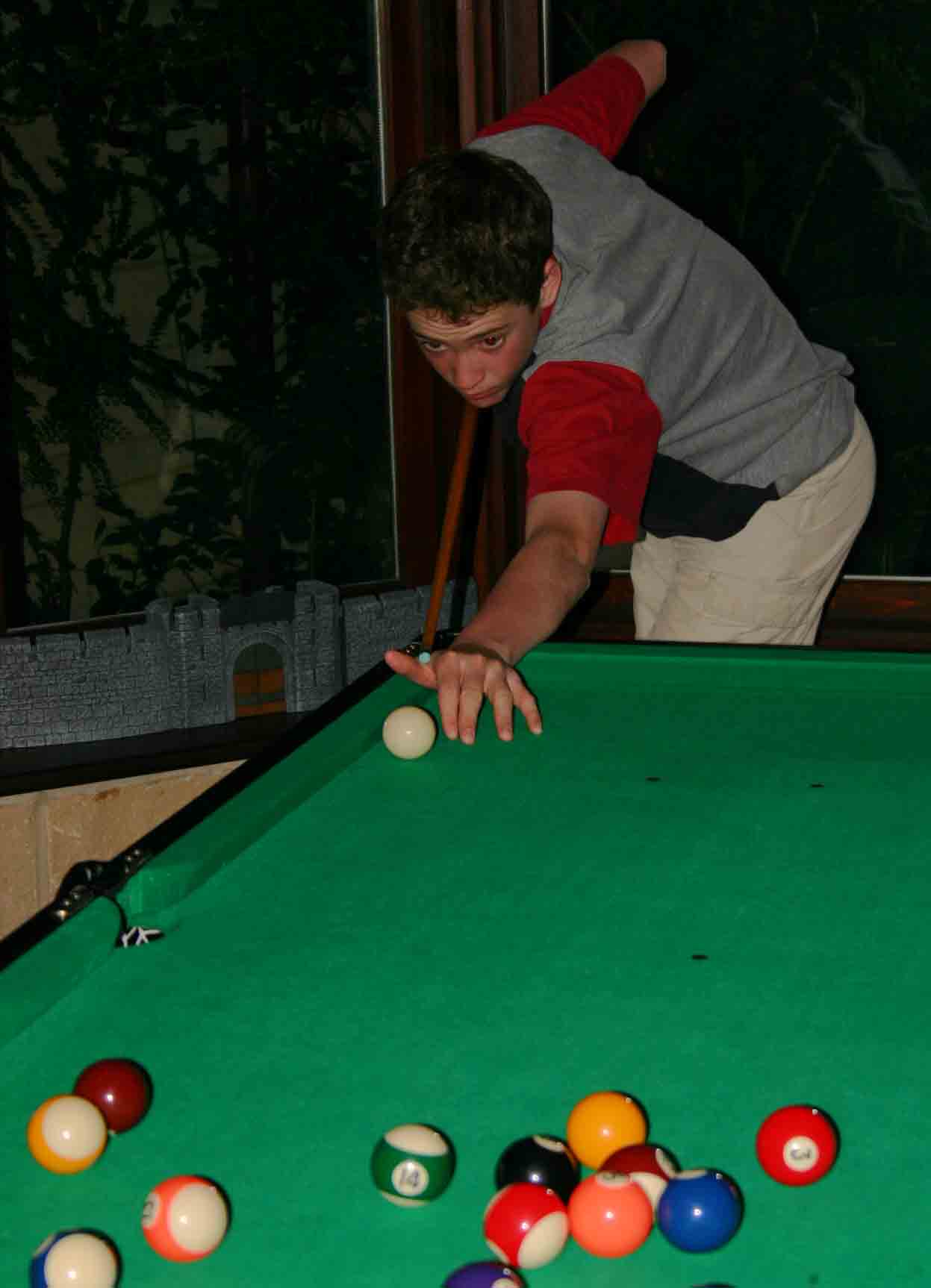 Jamie and Gareth play Snooker as Tim reclines by the TV